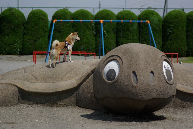 うん^^亀ちゃんの背中おっきいねぇ^v^